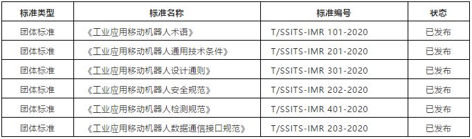 图表:移动机器人产业联盟制定的6项团体标准