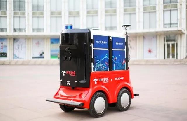 京东:2017年"6-18",京东首批试点运营的无人配送车在中国人民大学进行快递投递。2018年"6-18",在京东的北京上地配送站,20余台配送机器人整齐列阵。随着调度平台命令发出,首批载有”6-18”货物订单的配送机器人依次出发,自动驶向订单配送的目的地。