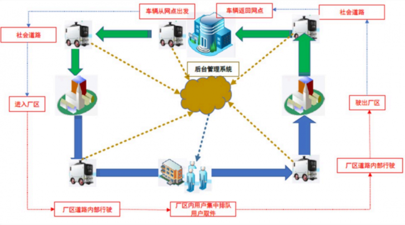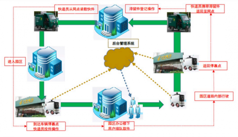 目前无人投递车作为低速运行的末端作业车辆,结合无人车的技术发展及实际的试运行场景,基于安全性、适用性及可拓展性的考虑,选择完全封闭或相对封闭的小区、园区、厂区、高等学府作为无人车投递场景的应用主要模式。