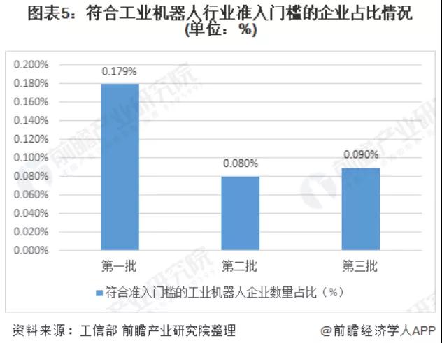 工信部在2016年制定了《工业机器人行业规范条件》,这一条件设定了标准的工业机器人行业准入门槛,而后分别在2018年、2019年与2020年公布了三批复合标准的企业名单,符合企业的数量分别为15、8、9家,占当年工业机器人企业总数的比例分别为0.179%、0.08%和0.09%,占比均不足2%,处于非常低的水平。并且这一比例还呈下降的趋势,预计在未来针对工业机器人这一行业,将会有更多的规范文件出台。