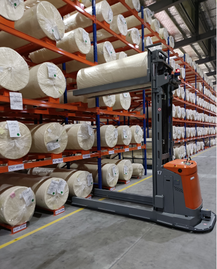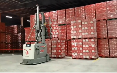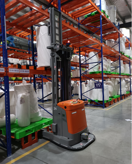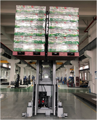 双工位平衡重叉式AGV属于国内首创,可同时插取两个托盘,托盘载重可达3吨,并且其配备了3D相机识别系统,在托盘直接堆垛存储场景中,可识别托盘对地高度,辅助判断货叉提升高度,实现托盘准确搬运,3层托盘直接堆垛,托盘堆垛高度可达6米左右,采用密集存储的方式。对于百威啤酒这一类的易碎品,更加的安全可靠。