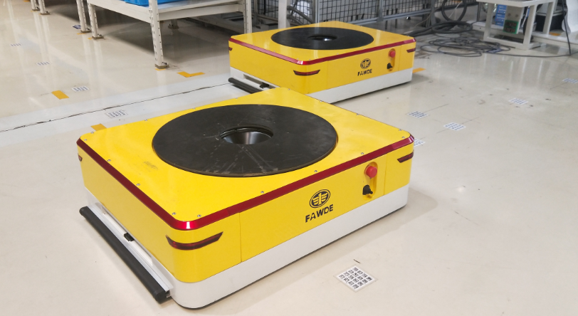 四工位万向背辊式AGV共有4个托盘工位,可以独立控制每个工位,可载重6吨。并且支持双向卸货,卸货流程可根据客户需要使用。万向四工位背辊式AGV的主要特点在于车体积大,运行速度快,载重大,定位精度高,但同时具有良好的灵活性,可以实现原地万向的移动。