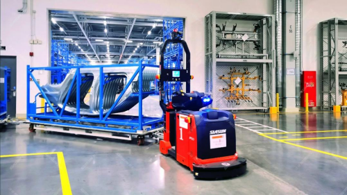 图:新松叉车AGV发动机工厂应用