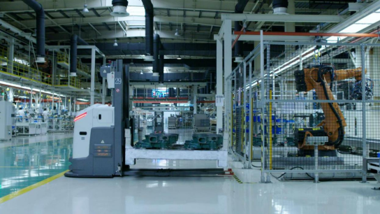 案例一:新松叉式移动机器人应用于德系高端汽车生产线